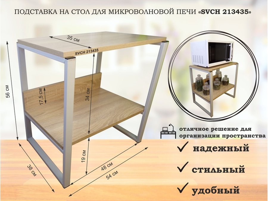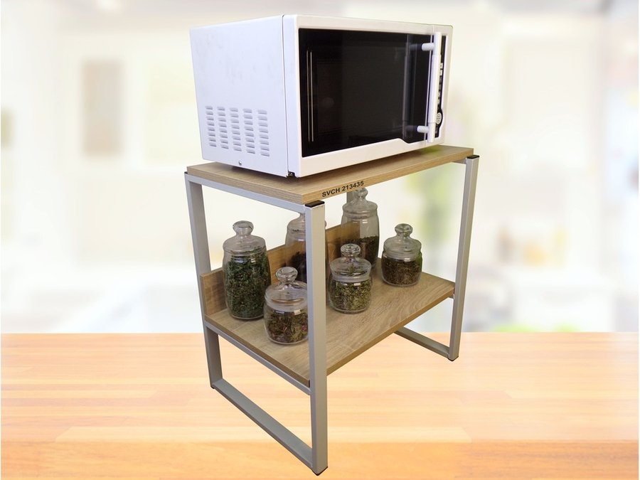 Подставка, полка на стол для микроволновой печи, высота 56см серый "SVCH 213435" полка 35х54, дуб