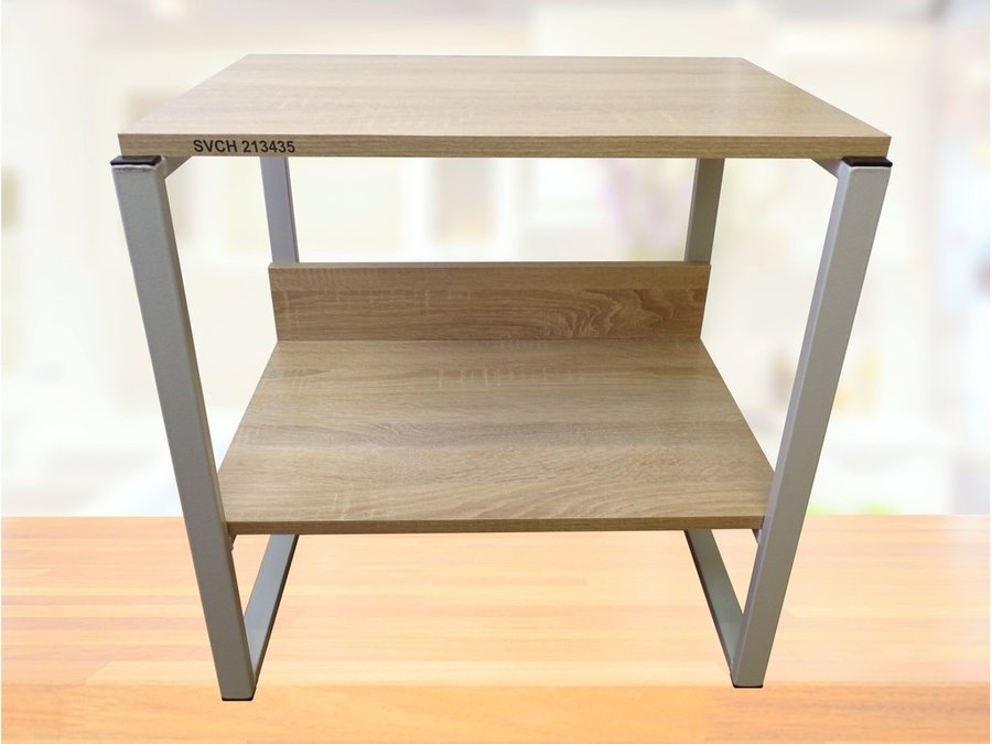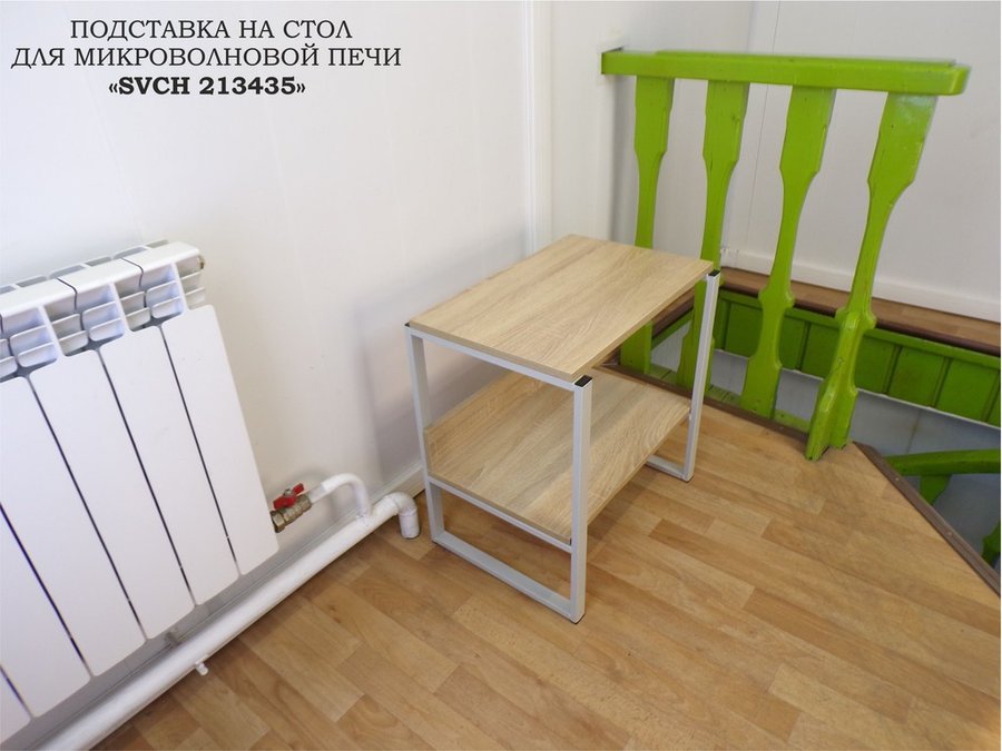 - Каркас изделия выполнен из высокопрочного металла. Полка изготовлена из ламинированного ДСП