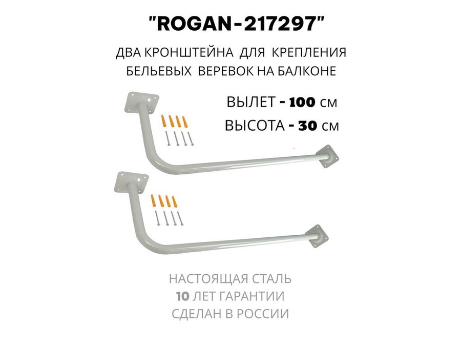 Сушилка для белья под веревки, 2 кронштейна, длина 100см, вылет 30см "ROGAN-217297" серый, 32мм