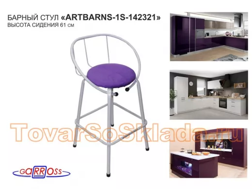 "ARTBARNS 1S-142321" cтул барный, табурет, спинка, высота 0,61метра, 22мм,серые ножки/фиолет. ткань - 142321