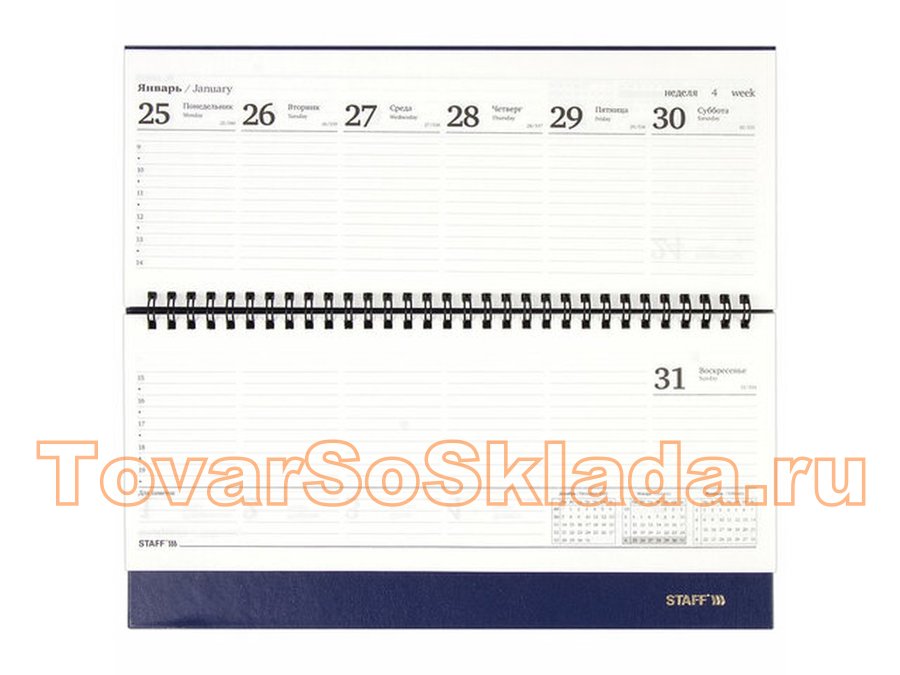 Внутренний блок содержит 60 листов офсетной бумаги белого цвета плотностью 60 г/м2. Обложка из бумвинила и твердый переплет обеспечивают долгий срок службы. Подходит для тиснения только фольгой. Скрепление осуществляется с помощью евроспирали. Размер изделия - 285х112 мм. С планингом STAFF выполнять повседневные задачи станет проще, чем когда-либо! Приобрести можно в нашем интернет-магазине!