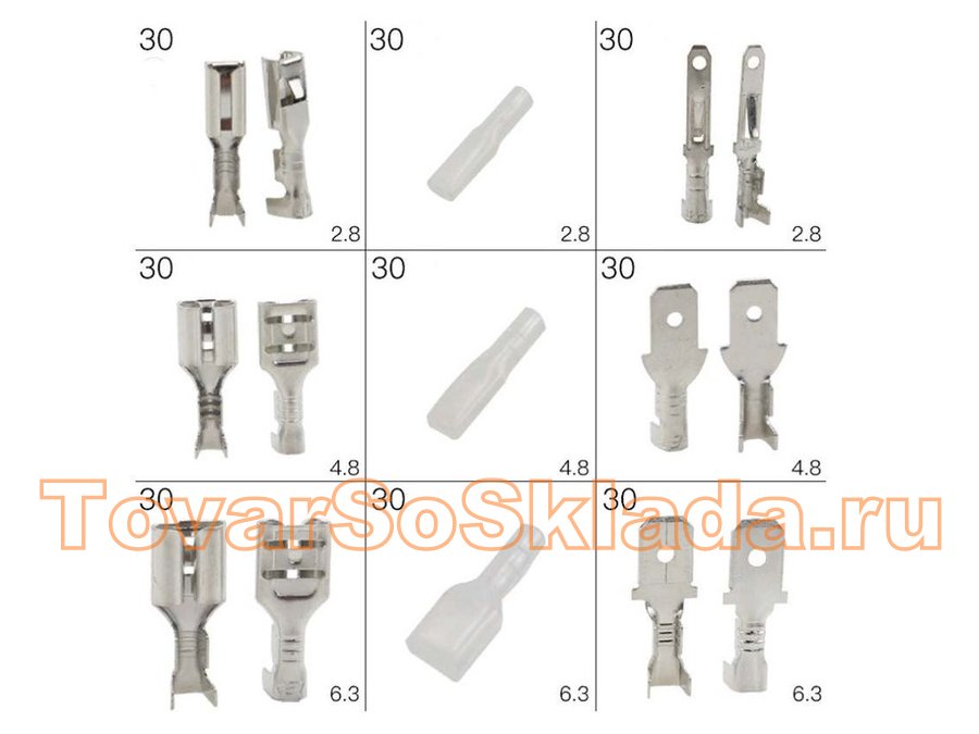 Набор клемм плоских мама+папа 2.8мм, 4.7мм, 6.3мм по 30 компл.