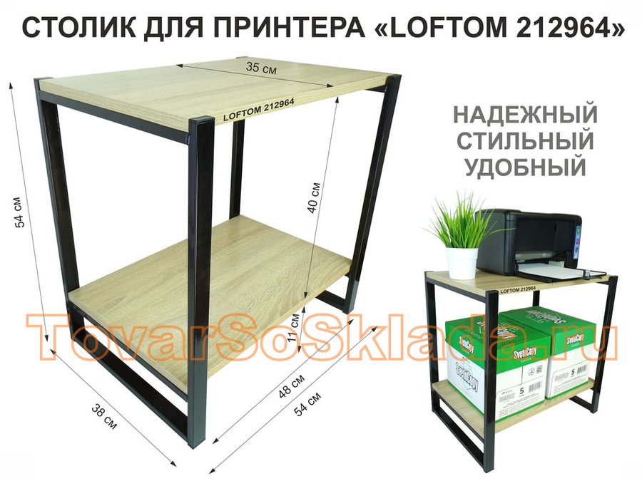 Столик для принтера, подставка под МФУ, высота 55см, черный "LOFTOM 212964" с полкой 54х35 см, дуб - 212964