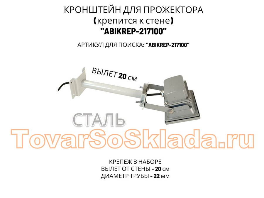 Кронштейн для прожектора к стене, диаметр 22мм, вылет 0,2 м "ABIKREP-217100" серый, основание 9х6см