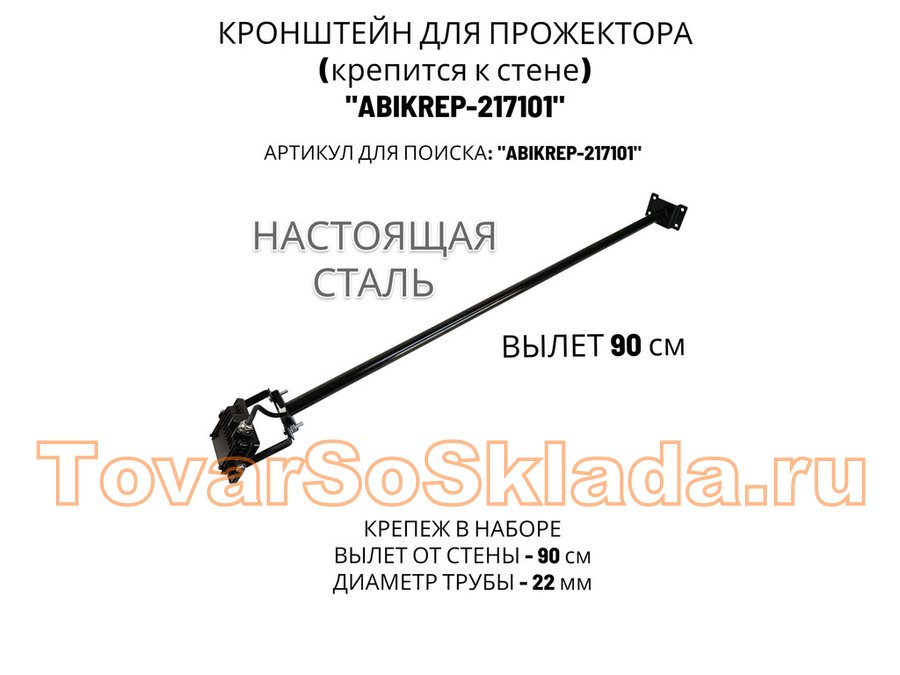 Кронштейн для прожектора к стене, диаметр 22мм, вылет 0,9 м "ABIKREP-217101" черный, основание 9х6см