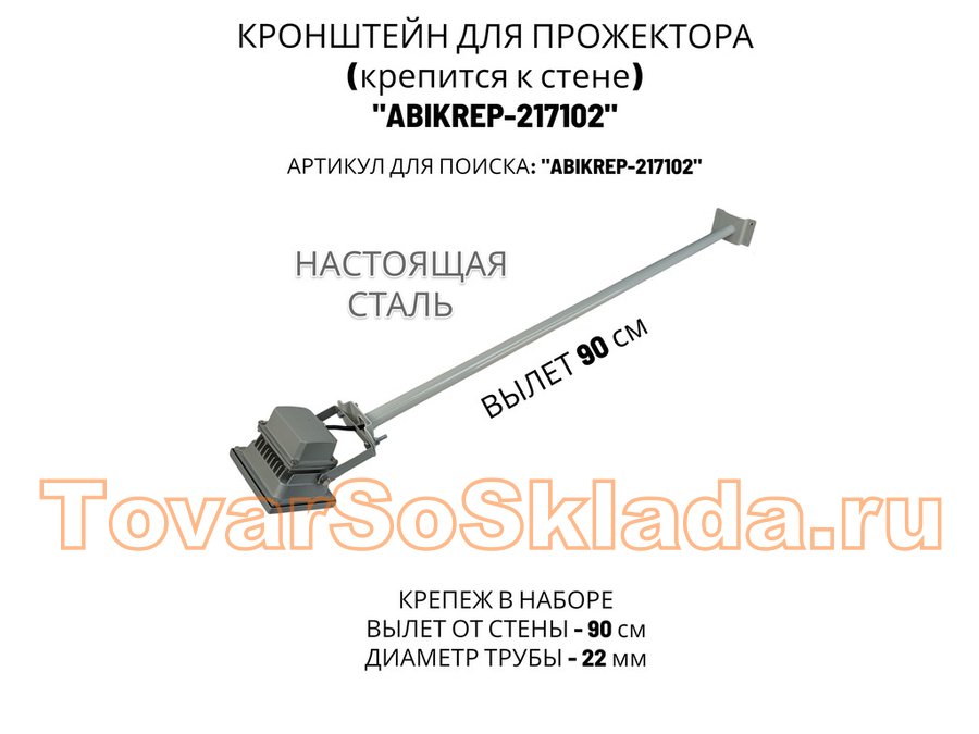 Кронштейн для прожектора к стене, диаметр 22мм, вылет 0,9 м "ABIKREP-217102" серый, основание 9х6см