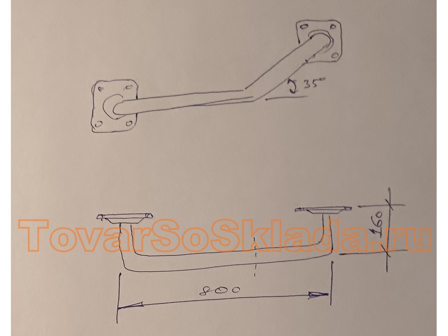 Поручень, угол 35гр, левый, 80см "ПОРУЧПРО-217113" пристенный, вылет 16см, серый, диаметр 32мм