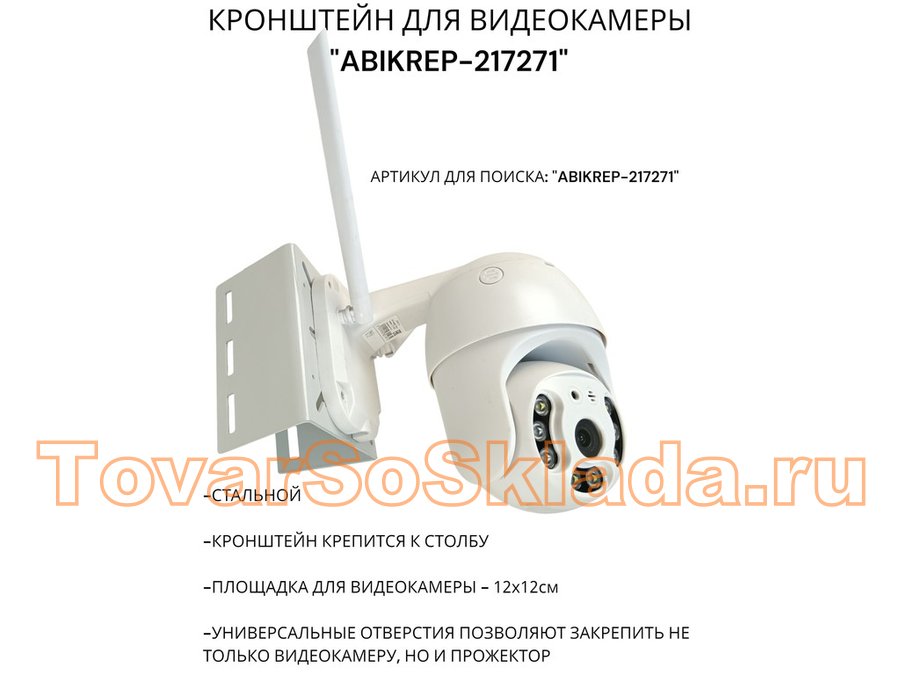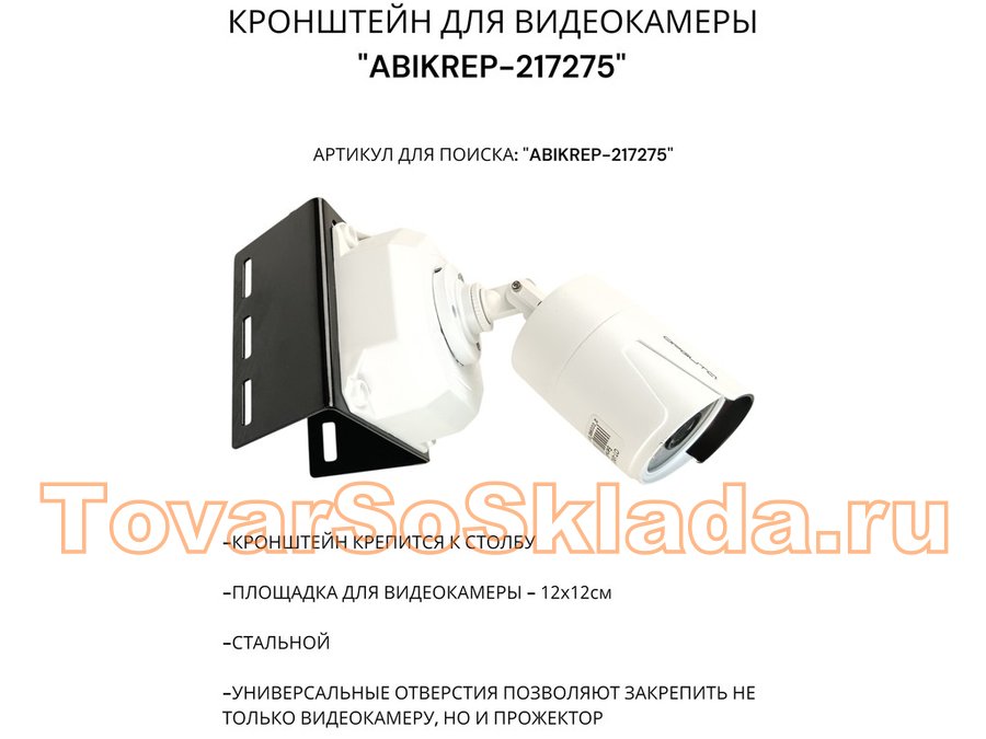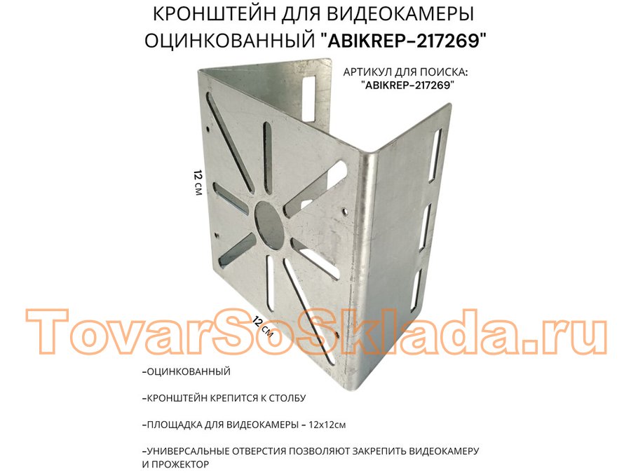 Кронштейн оцинкованный для камеры на столб "ABIKREP-216717" 100х104мм, сталь, под хомуты, вылет 5см