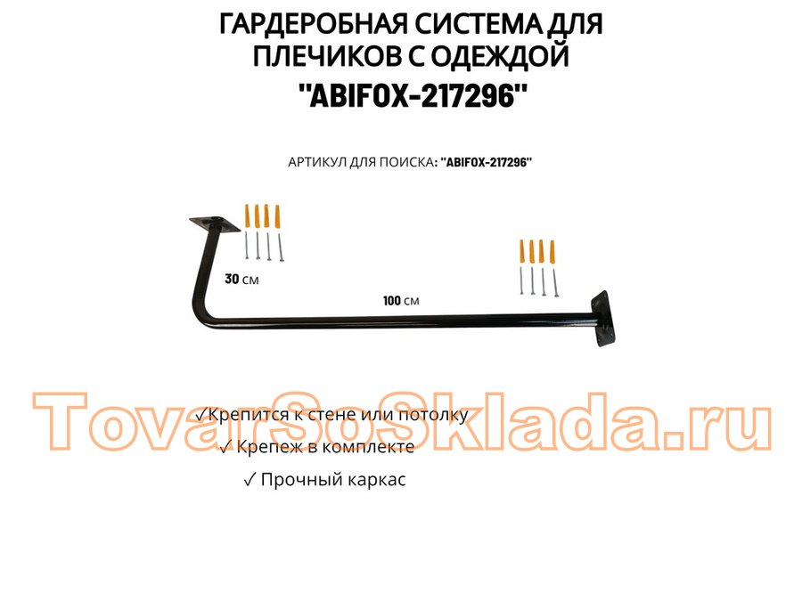 Гардеробная система для плечиков с одеждой, длина 100см, вылет 30см "ABIKFOX-217296" черный,диам32мм