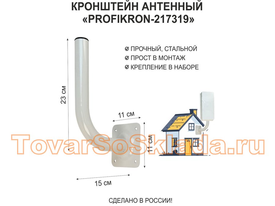 Кронштейн антенный, вылет 0,15м, вверх 0,23м "PROFIKRON-217319" серый, диаметр 32мм