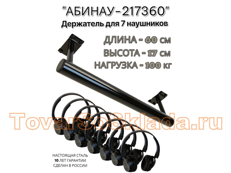 "АБИНАУ-217360" держатель для семи наушников, длина 60, высота 17 см, сталь, под стол,к стене,черный