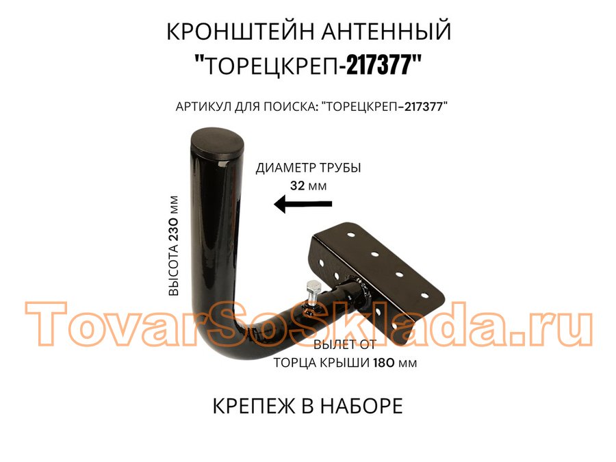 Кронштейн антенный, верхняя площадка 5х15см "ТОРЕЦКРЕП-217444" черный, диаметр 32мм, обжат на конце