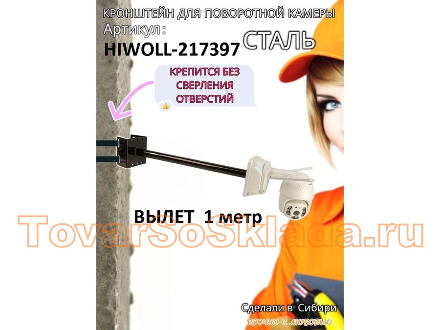 Кронштейн на столб для крепления гермобокса с видеокамерой,вылет 100 см "HIWOLL-217397" черн., сталь