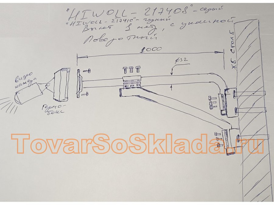 Кронштейн "HIWOLL-217411" на столб для видеокамеры, вылет 100см, с укосиной, серый, сталь
