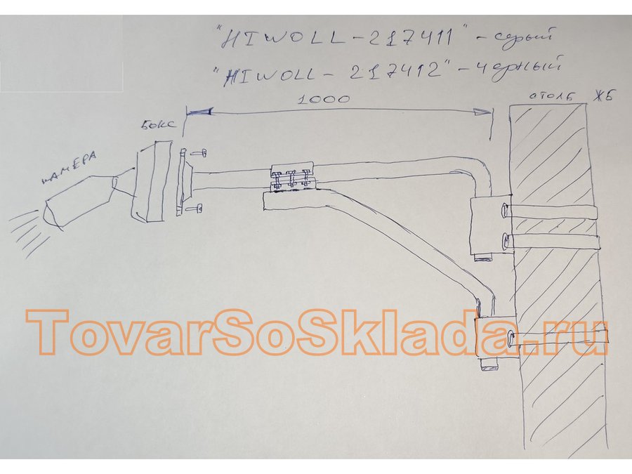 Кронштейн "HIWOLL-217412" на столб для видеокамеры, вылет 100см, с укосиной, черный, сталь