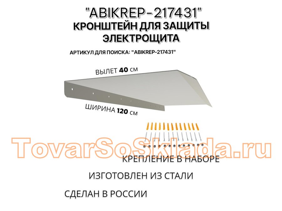 Козырёк для защиты электрощита от дождя "АБИКРЕП-217431" серый, ширина 120 см, вылет 40 см, сталь