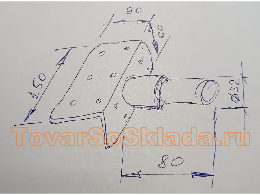 Кронштейн для прожектора на квадратную трубу 60х60мм с отверстием "ХОП-217067" серый, сталь